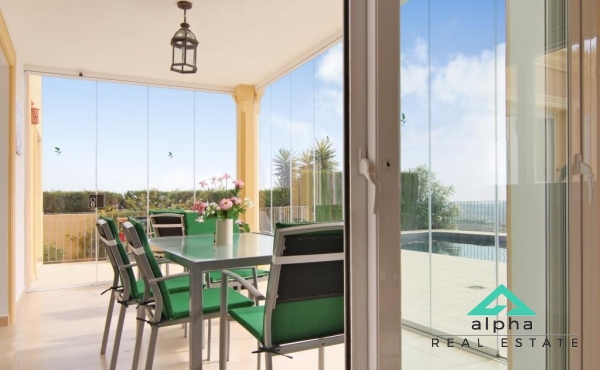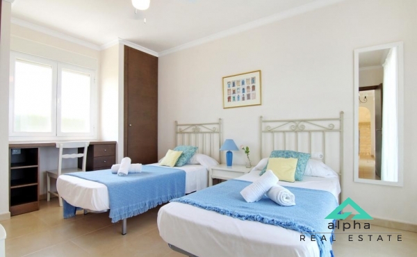 This villa from 2008 offers amazing views over the valley of Moraira and the mountains. It is beautifully designed and comes with well maintained landscaped gardens and a lovely terraced pool deck. The property is situated in a sought after quiet residential urbanisation. As you enter the property you are welcomes by a good sized hallway with guest toilet and doors that lead into the well sized living room where there is direct access to a glazed naya which overlooks the pool area. From the living room you have a separate well equipped kitchen. On the ground floor there are 2 bedrooms and one bathroom. On the upper floor there is a lovely master bedroom ensuite with large private terrace to enjoy the 180 degree sea views from Moraira to Calpe.